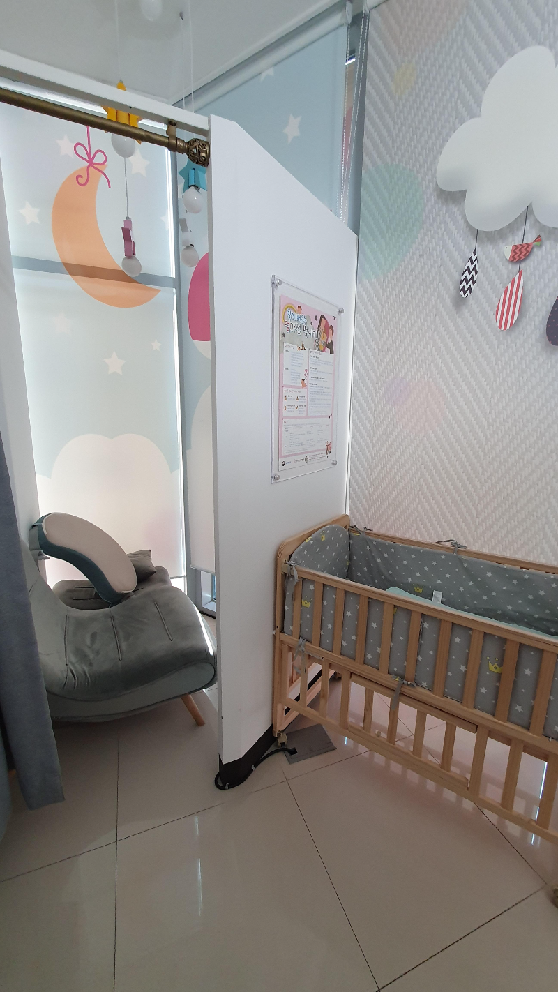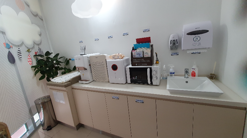 수유실은 다른 휴게소들과 유사하게 푸드코트 내에 위치하고 있습니다. 개장한 지 얼마 되지 않아서 시설 또한 매우 깨끗한 편이었습니다. 수유실의 장점으로는 세면대가 내부에 위치하고 있어서 기저귀를 교체하고 바로 손을 씻을 수 있는 점이 좋았습니다. 다른 휴게소들에 비해 찾는 사람들이 적은 편이라 그런지 기다리지 않고 바로 사용할 수 있어서 좋았습니다. 아쉬운 점으로는 아기 식탁 의자가 내부에 있는지 확인이 안 되어서 이유식을 먹이려는 분들이라면 사전에 확인이 필요할 것 같습니다.