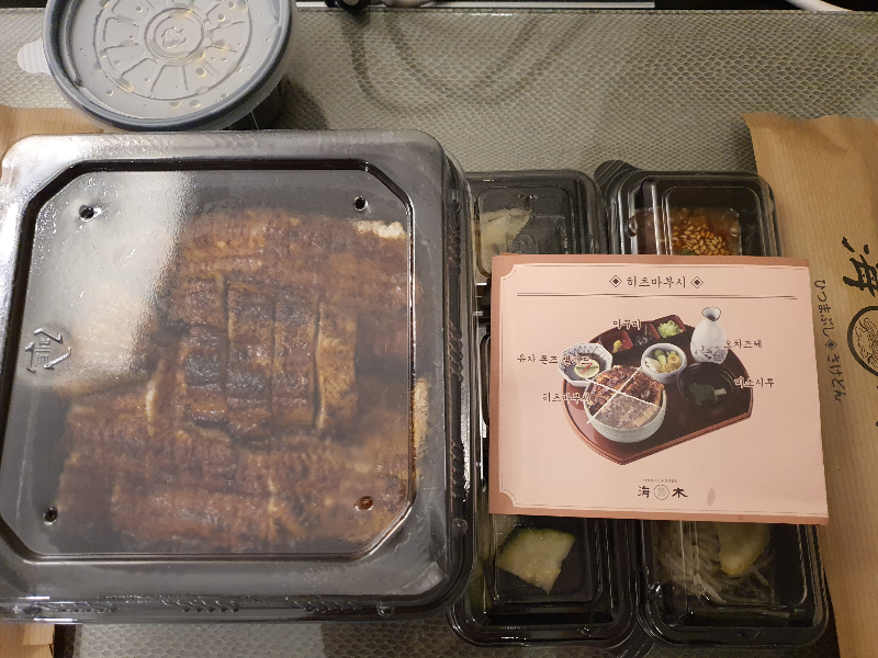 부산 해운대는 많은 사람들이 방문하는 유명한 관광지 중 하나입니다. 또한 부산에서도 유명한 부촌이다 보니 다른 곳에 비해 맛집들도 많이 위치해 있습니다. 많은 맛집들 중에서도 이번 부산 여행에서 방문한 해목은 최근 방송인 "줄 서는 식당"에서도 소개된 맛집입니다. 해운대에 위치한 것이 본점이고 서울 논현동과 롯데월드몰에도 매장이 오픈했습니다. 얼마나 맛있으면 인기가 많을까 생각했고 장어덮밥과 카이센동이라는 메뉴가 비슷비슷한 맛일 거라는 생각에 의심의 눈초리를 가지고 해운대 해목 본점에 방문을 하게 되었습니다. 여행 일정상 매장에서 식사를 할 수가 없어서 포장 주문을 했는데 오픈 시간 1시간 전부터 포장 예약이 가능하고 포장을 받을 수 있는 시간도 예약 순서대로 진행되는 만큼 예약부터 인기가 많다는 것을 느낄 수 있었습니다. 예약한 시간은 토요일 오후 4시쯤 전화 예약을 했는데 포장을 받을 수 있는 가장 빠른 시간이 오후 6시 30분이었습니다. 저녁시간에 받을 수 있다는 것을 다행으로 생각했습니다. 대부분의 메뉴는 "특" 사이즈가 존재했는데 멀리까지 와서 이왕이면 많이 먹어 보자는 마음으로 "특" 사이즈를 생각했습니다. 그리고 해목에서 가장 인기 있다는 장어덮밥과 카이센동 메뉴를 "특" 사이즈로 주문했습니다. 2개 메뉴의 금액은 약 10만 원 정도로 다른 가게에 비해 조금 비싼 편이었습니다.