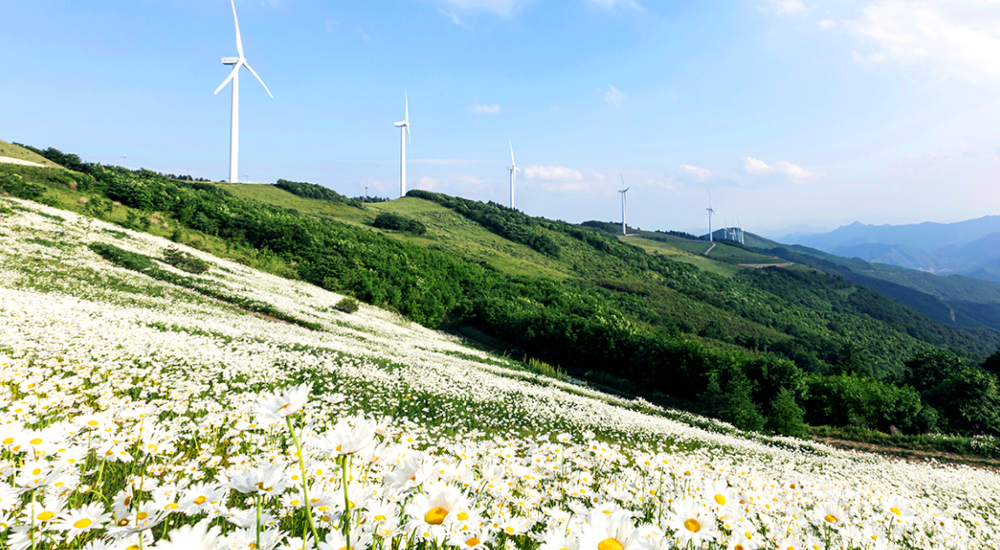 청옥산 정상에 위치한 육백마지기와 풍력발전소