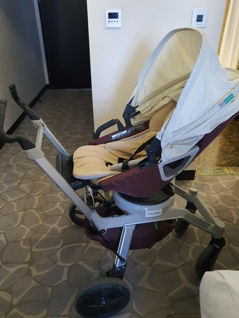 파라다이스 부산 호텔에서는 다양한 아기 용품을 제공하고 있습니다. 아기 어메니티부터 가습기, 젖병 소독기, 아기침대, 아기 욕조, 유모차까지 집안에서의 편안함을 호텔에서도 느낄 수 있었습니다. 유모차는 호텔 안과 밖에서 모두 사용할 수 있기 때문에 해운대 해수욕장을 산책할 때도 좋았습니다. 젖병소독기와 아기욕조는 집에서 사용하는 것과 동일한 제품이라 사용하는데 불편함이 없었고 아기 침대도 사이즈가 6개월 아기가 사용하기에 적당했습니다.