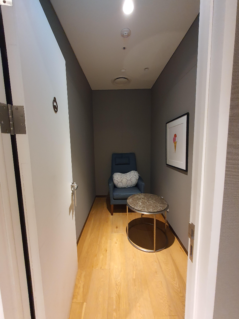 분유를 먹일 때는 방안 소파에서 편안히 먹일 수 있었습니다. 준비해 온 이유식은 전자레인지에 데우는 과정이 필요한데 2가지 선택을 할 수 있었습니다. 첫 번째로는 서비스데스크에 요청해서 데우는 방법과 두 번째로는 수유실에 가서 직접 데우는 방법입니다. 저는 수유실에 직접 가는 방법을 선택했는데 이유는 아기 식탁의자가 수유실에 있기도 하고 싱크대, 아기 물티슈, 수유 의자 등 시설이 잘 갖춰져 있었습니다.